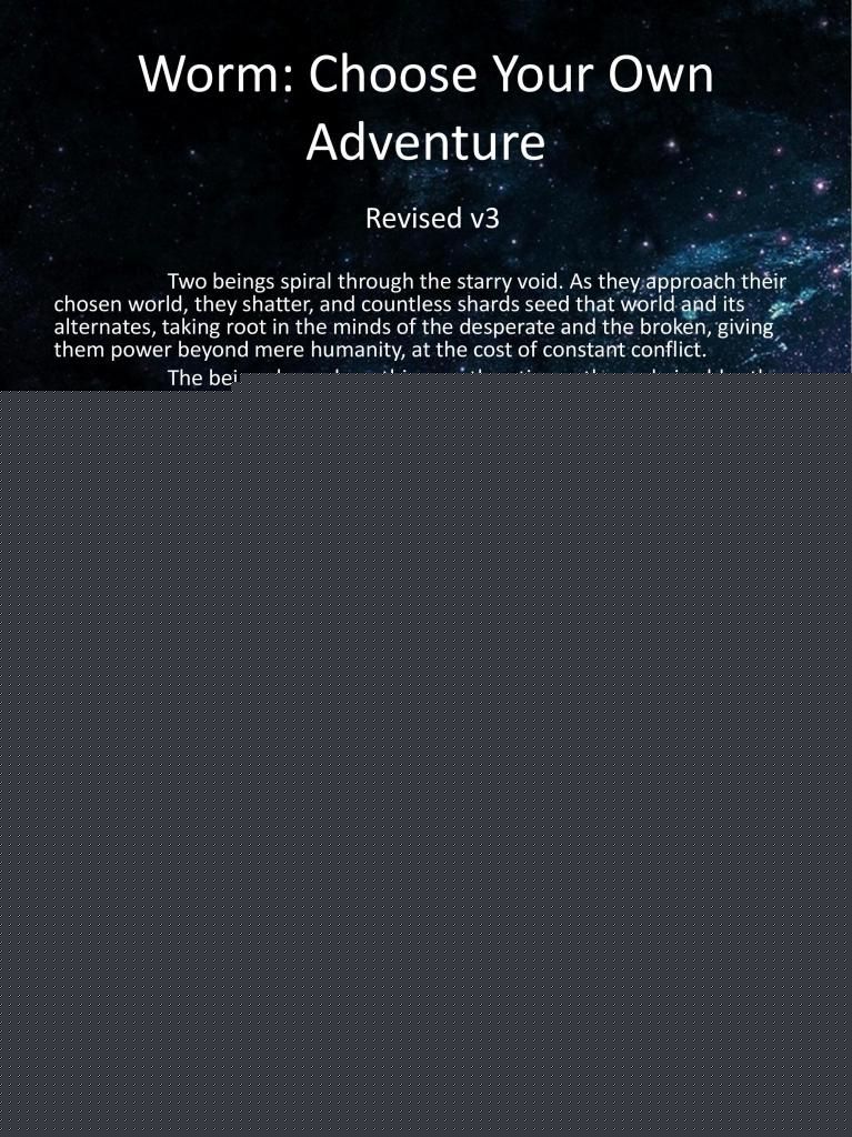 "Don't know," Tattletale grunted out. Her grin was still missing and she looked just as lost as I was, "That little trick wasn't supposed to open a door to anywhere."