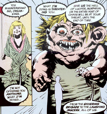 I frown. Swamp Thing, I feel your pain there, but was this really..? He's not intelligent. Maybe he couldn't get his head around the idea of asking the police or child services? Still… He's got awareness throughout all plant life. Isn't that like Ophidi-me with the construct eyes? Or maybe he doesn't get full awareness until he animates dead plant matter as well?